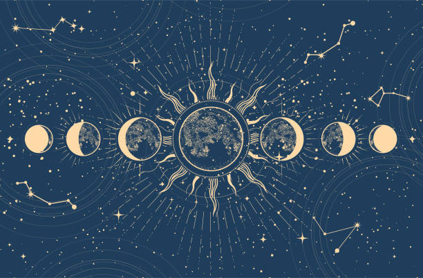 Lunar phases and moon eclipse, mystical moon in space, astrology and horoscope background, oneiromancy, vector